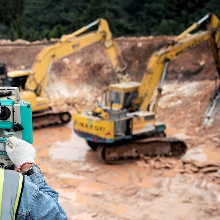 Infrastruktur- und Fundamentarbeiten für Straßen, Kanäle und Versorgungseinrichtungen.